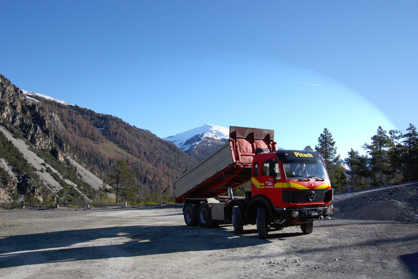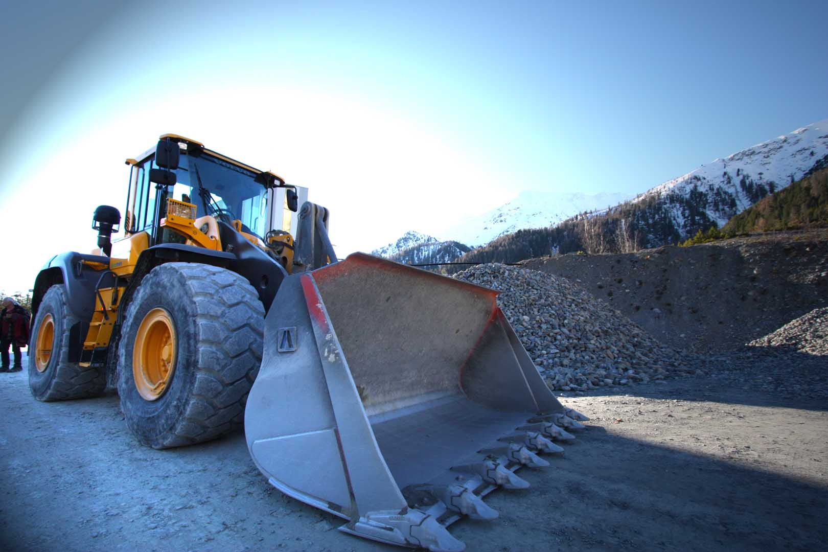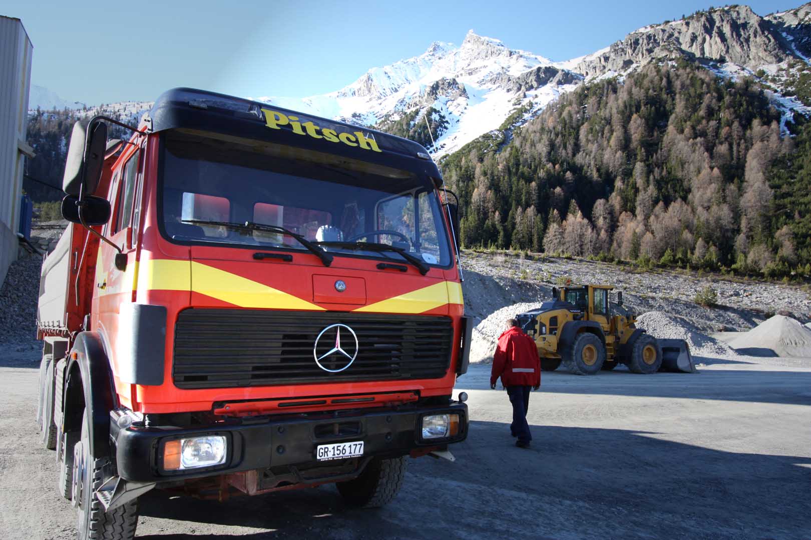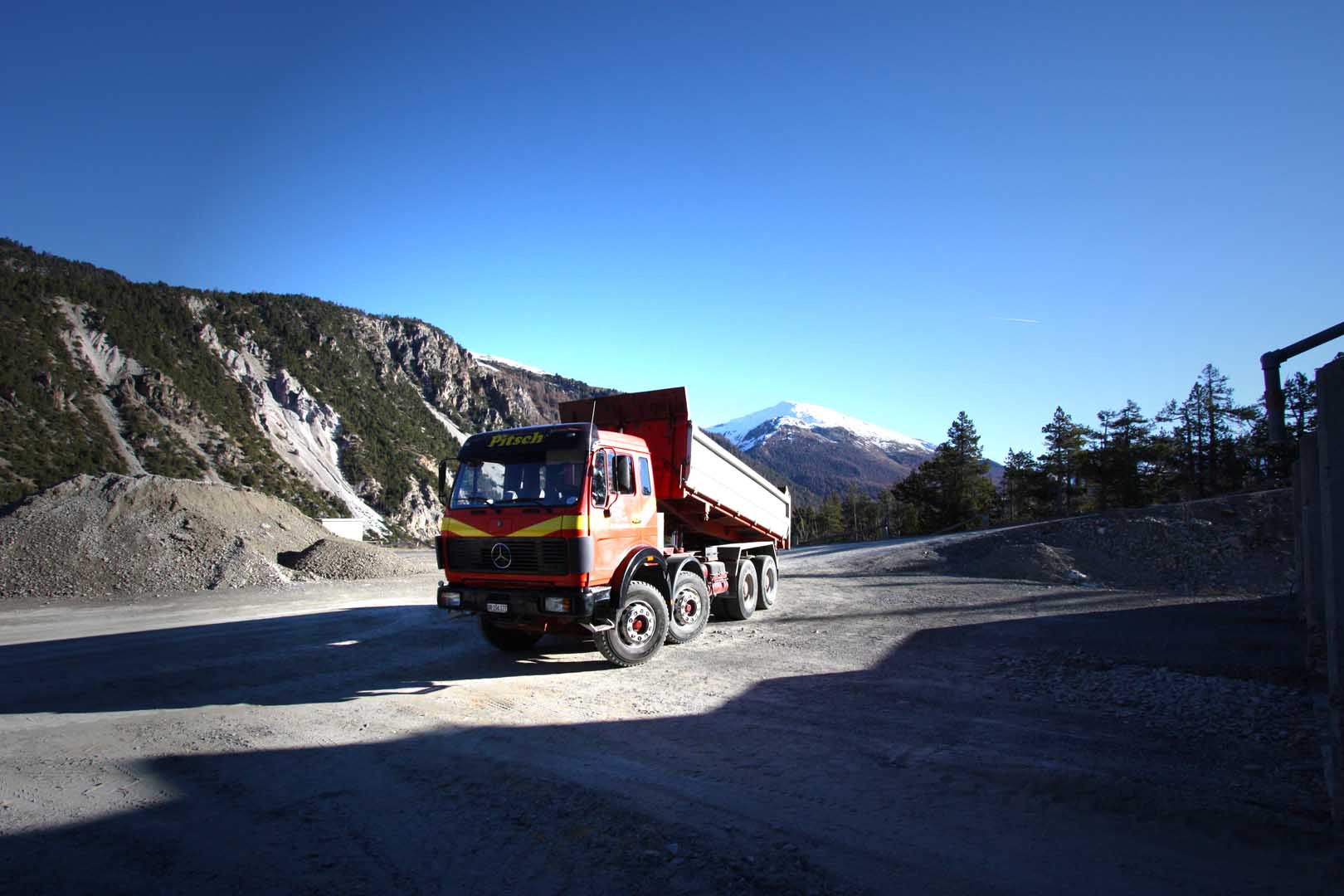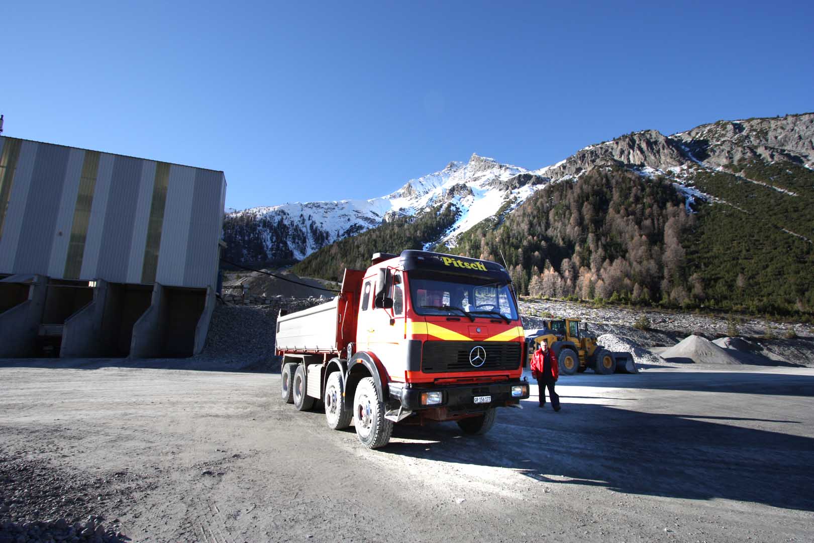 Von dessen natürlicher Erosion gewinnen wir unsere Materialien, die überwiegend im Tal verbleiben und für Strassen- und Bauten eingesetzt werden.
