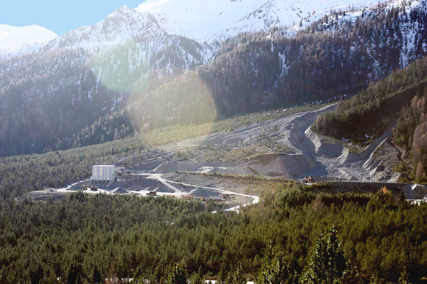 Das Kieswerk liegt am Fuße des Piz Daint im Val Müstair.